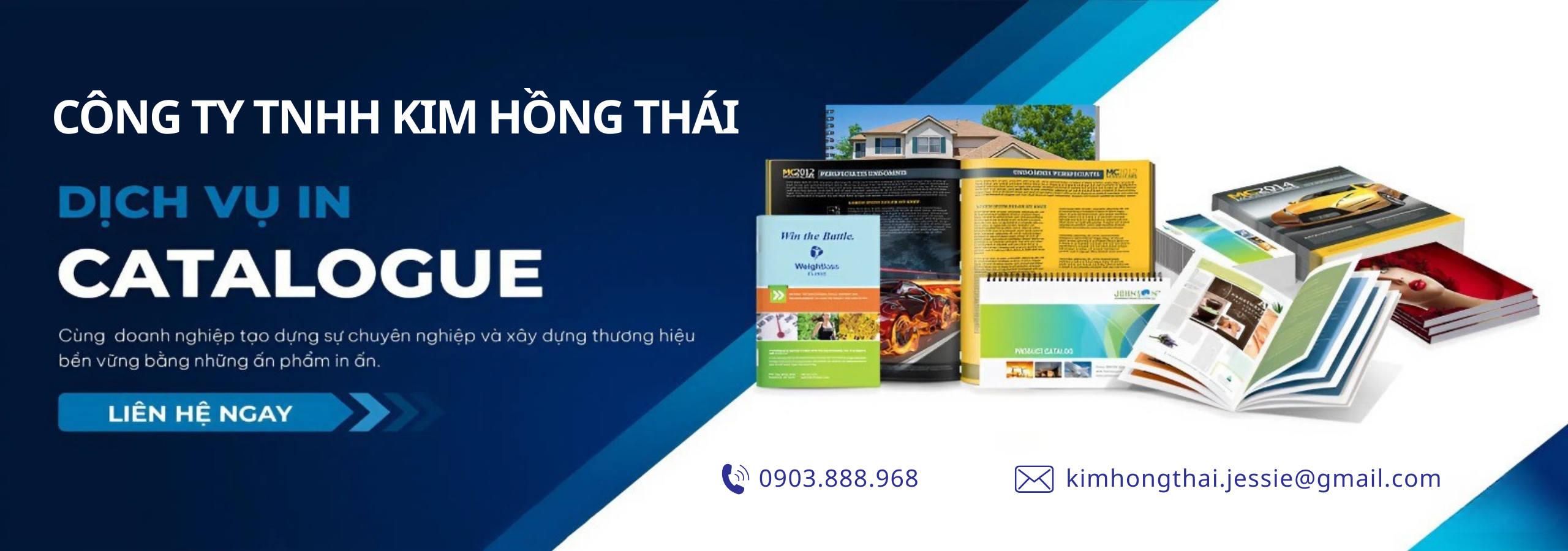 Chào mừng bạn đến với Công ty TNHH Kim Hồng Thái, là đơn vị hoạt động trong lĩnh vực cung cấp các giải pháp in ấn chuyên nghiệp như in ấn tài liệu, brochure, catalogue, tờ rơi, bao bì sản phẩm, in trên các chất liệu đặc biệt và nhiều dịch vụ in khác. Với nhiều năm kinh nghiệm trong ngành, chúng tôi đang không ngừng học hỏi và cải tiến sản phẩm, áp dụng công nghệ hiện đại nhằm mang đến sản phẩm tốt nhất đến quý khách hàng. Công ty TNHH Kim Hồng Thái cam kết mang đến cho khách hàng những sản phẩm chất lượng, đáp ứng mọi yêu cầu khắt khe về thiết kế, chất lượng và tiến độ.